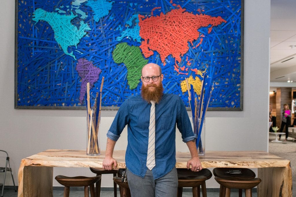 The amenities include noise-buffering workspaces, a plethora of power outlets, private phone areas, a family room, comfortable seating, a computer bar, tranquility areas, access to high-speed Wi-Fi, showers and a custom art installation by local Houston artist Patrick Renner.