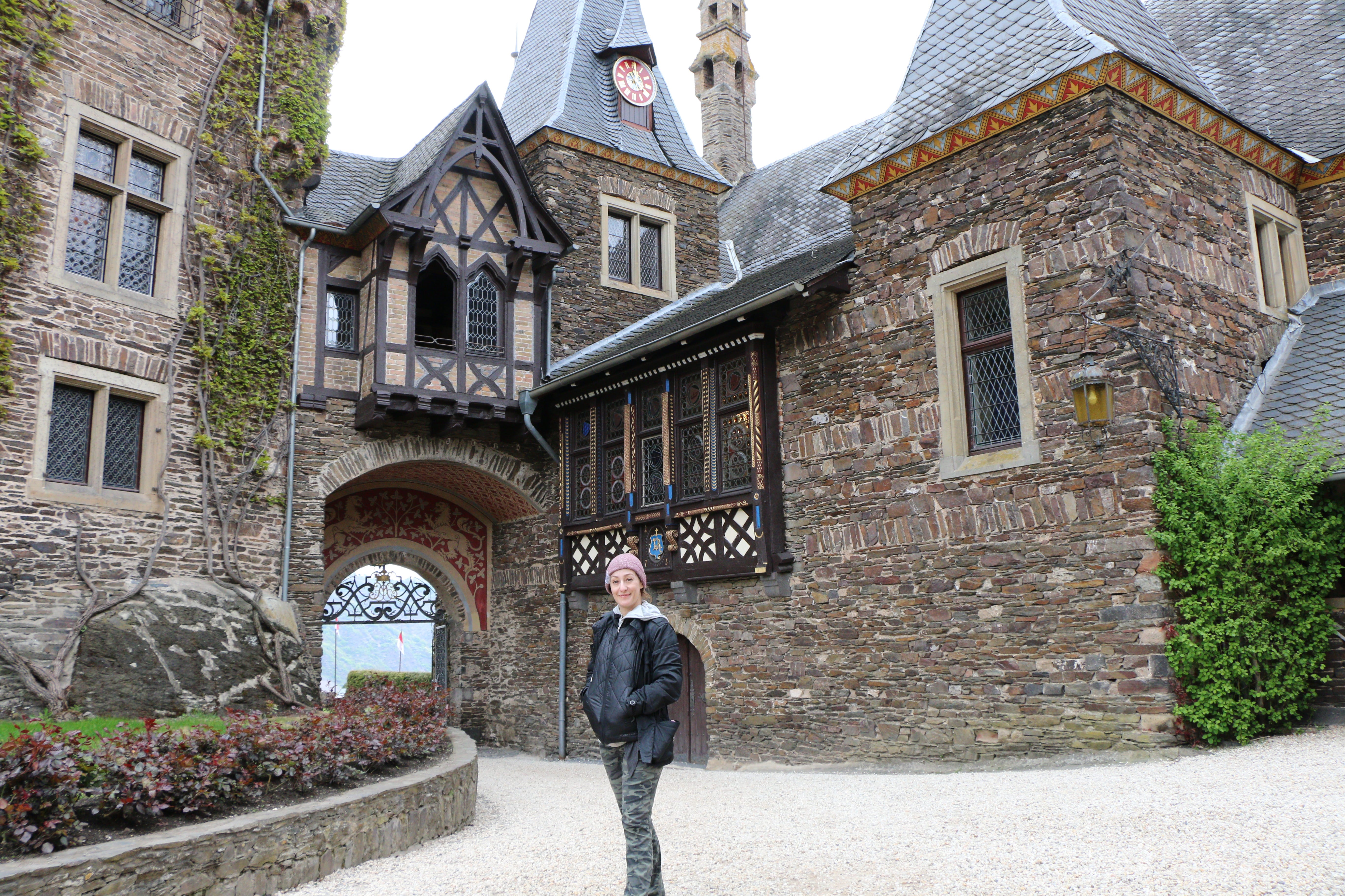 I wandered through the crooked streets of Cochem to the town’s refurbished castle built in 1000 AD. The castle has an original mural of St. Christopher on the outer wall of the main turret, the major portions of which survived Napolean’s bombardment (twice). It was bought in the 1800s by a wealthy businessman Louis Ravené, who incorporated the original Gothic ruins of the castle into a grand new structure for his beloved and much younger wife (who promptly left him for the building’s architect a year before the grand home was finished).