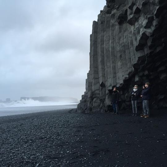 A Broad Abroad at Reynisfjara black beach.