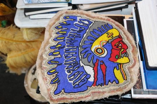 Lewis hand-beaded this chest plate and saved it from Katrina.